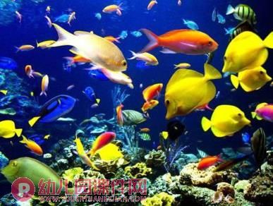 1、经验准备:欣赏过各类“美丽的鱼",画过热带鱼,对鱼的外形特征、花纹色彩有所了解。
