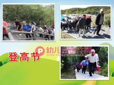 本文为幼儿园九九重阳节PPT课件教案图片,活动目标是体验明显的季节特征,感受和爷爷奶奶在一起的快乐,感受节日的快乐气氛,乐意参加布置环境的活动,在活动中,让幼儿了解重阳节,学会尊敬和关爱老人。适用于九九重阳节相关的教