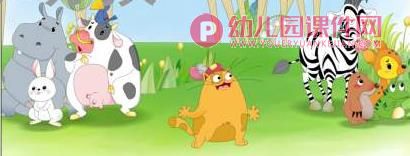 2、教师出示图片“猫”,问:它是谁?(猫)它可不是一只普通的猫,它是一只生活在城里的野猫,是一只会说话的野猫。这不前几天放假了,它去了一趟森林,森林里的动物们都围着它要听它讲城市的事情。有位叔叔把野猫讲的内容编成了一个好听的故事,你们想听吗?