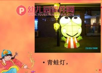 本文为幼儿园小班语言儿歌课件PPT《花灯》PPT课件配音音乐,小班语言儿歌课件PPT《花灯》PPT课件配音音乐主要包含了在大街,在小巷,美丽花灯真明亮,青蛙灯,兔子灯,荷花灯儿真漂亮,花灯美,花灯亮,宝宝快来唱一唱等内容,欢迎点击。适用于花灯相关的教学实践,所属栏目小班语言PPT。