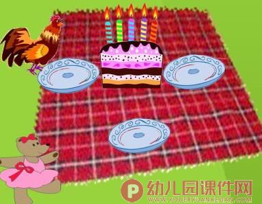 3、 告诉大家一个好消息,今天是小熊小黑和小白的生日,我们一起去为它们庆祝好吗?