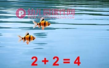 2.老师和小朋友们戴着头饰,坐到讲台边用鱼竿钓鱼,算出每条鱼上的算式题。巩固4以内加减法。