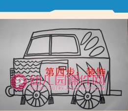 2、引导幼儿选择多种色彩表现汽车的美,注意图色时的要点,如均匀、不涂到轮廓之外等。