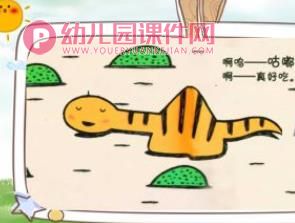 8、讲述:第四天,好饿的小蛇扭来扭去在散步,你们看它发现了什么?