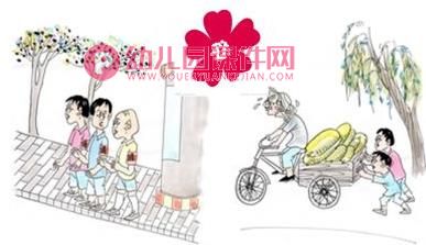 小结;老师带领幼儿一起边看挂图边讨论:如果挂图上的小朋友是我,我会怎样做!