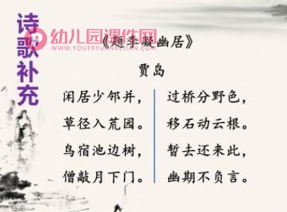 今天,我们就来学习贾岛写的一首古诗,叫做课件PPT《寻隐者不遇》。