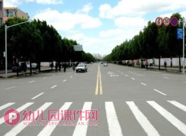 3. 视频课件PPT《我会安全过马路》 提问:"为什么小女孩过马路的时候警察叔叔不让她过呢?" 小结:"横穿马路很危险,过马路的时候要走斑马线,红灯亮时不能过马路,只能等绿灯亮时才能过马路,过马路时也要左右看一看是否安全"。 继续播放视频请幼儿回答视频中提出的问题。 通过视频,再次集中幼儿注意力,并且让幼儿自己来总结安全过马路的方法。 让幼儿知道过马路时除了走斑马线还应看红绿灯并左右看一看。