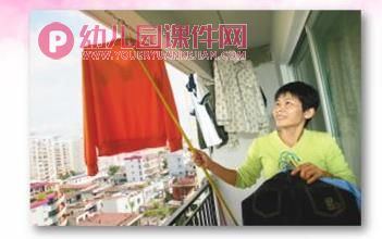 讨论小结:在阳台上取晒在衣架上的东西时,不能将身子探出护栏,应该用衣钩将衣物钩到可以拿到的地方再取回。否则,不小心会发生危险。不能往阳台外扔东西,会砸伤他人。如果遇到阳台上的门被吹上,应向屋里的大人求救,请他们帮忙。