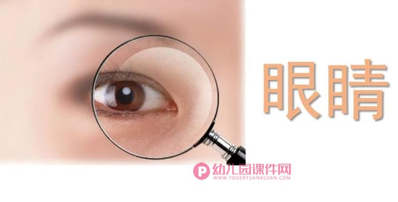 1.根据已有经验回忆眼睛的组成部分。眼睛里面有什么?(眼珠、眼白)外面有什么?(眼皮、眼睫毛)