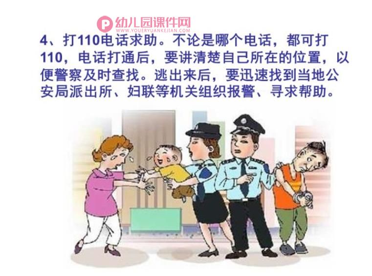 本文为幼儿园防拐骗安全教育PPT课件教案,幼儿园防拐骗安全教育PPT课件教案,活动目标是知道不跟陌生人走,有初步的安全意识和自我保护能力。适用于防拐骗相关的教学实践,所属栏目幼儿园安全PPT。 【篇一】幼儿园防拐骗安全