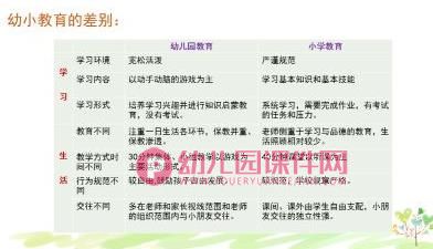 本文为幼儿园大班家长会幼小衔接PPT课件,幼儿园大班家长会幼小衔接PPT课件,内容是1、教育教学任务、儿童主导活动及学习方式不同,作息制度与生活管理方式不同,学习时间不同 ,师生关系不同 适用于家长会幼小衔接相关的教学实践,所属栏目大班主题PPT。