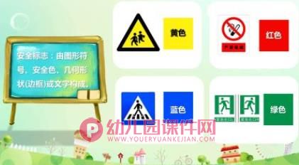 3.小结:生活中有很多常见的安全标志,小朋友们要留心观察这些标志,看清楚这些标志提醒我们要注意什么,并听从这些标志的指示。