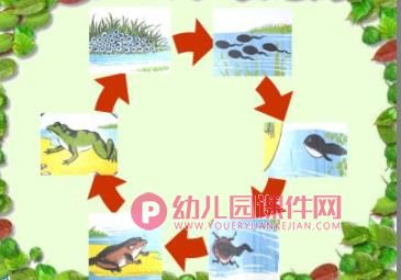 1.倾听儿歌和音频,模仿青蛙叫声;观察画面,了解青蛙和蝌蚪的区别。