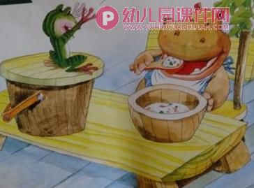 嗯!小河马不会自己吃饭,谁来帮助小河马了?(小青蛙)