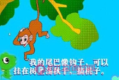 ①出示猴子的图片,认知猴子尾巴长的特征。