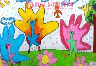1、观察自己的小手,初步学会用手进行创意绘画。