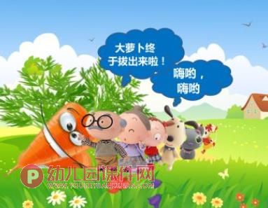师:小朋友们,我们都听过课件PPT《拔萝卜》这个故事。下面,小胡老师要考考大家,你记得课件PPT《拔萝卜》里有谁去拔萝卜了?(根据幼儿回答,出示故事中人物图片)