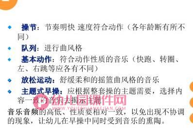 本文为课件PPT《幼儿园早操培训》PPT课件,课件PPT《幼儿园早操培训》PPT课件主要包含了ppt课件,什么是幼儿基本体操,组成早操的四大部分,运动类别和基本动作,队列队形练习,早操创编的基本原则,如何选择和提供早操中的器械等内容,欢迎点击。适用于幼儿园早操培训相关的教学实践,所属栏目幼儿园培训PPT。