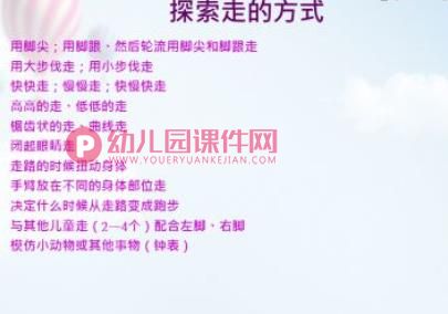 本文为幼儿园体育游戏课件,幼儿园体育游戏课件主要包含了探索走的方式,探索多种跑的方式,集体体育教学活动的组织,体育活动及游戏,废纸盒、泡沫垫等内容,欢迎点击。适用于体育游戏相关的教学实践,所属栏目幼儿园游戏PPT。