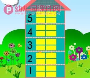 (2)教师:(指最下面)本文为第几层?(引导幼儿明白开始数的这一个就是第一。)(3)依次完成第二层、第三层、第四层、第五层的数数。