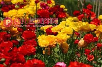 2、引导幼儿观察PPT画面,说说:图上有什么?你看到了什么颜色的花儿?