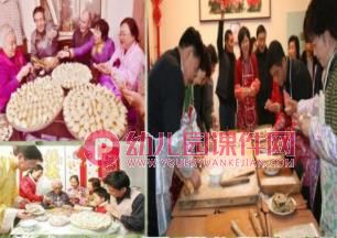 3、小结:原来吃饺子是表达我们中国人辞旧迎新之际祈福求吉愿望的特有方式,我们幼儿园在迎接新年的到来也会包饺子,回忆一下我们包饺子吃饺子的快乐时光吧。