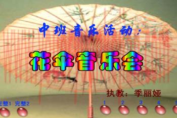 本文为幼儿园中班音乐活动课件PPT花伞音乐会FLASH课件动画教案,幼儿园中班音乐活动课件PPT花伞音乐会FLASH课件动画教案包含了flash课件,活动目标是启发学生用轻快、活泼的歌声表达歌曲课件PPT小小花伞的愉悦欢快的情绪,歌唱各族儿童的的大团结,学唱此歌曲的谱。适用于花伞音乐会相关的教学实践,所属栏目中班音乐PPT。一、教学内容:歌曲课件PPT小小花伞二、教学目标:1、启